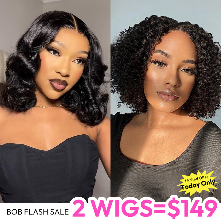 2 WIGS=$149|12" Wavy 4x4 Lace Bob Wig+16" Curly 13x4 Lace Bob Wig Flash Deal