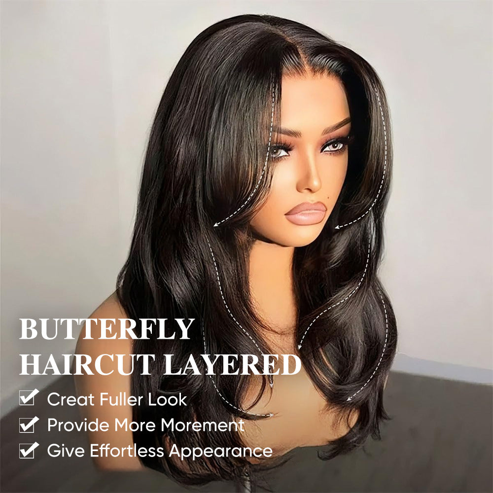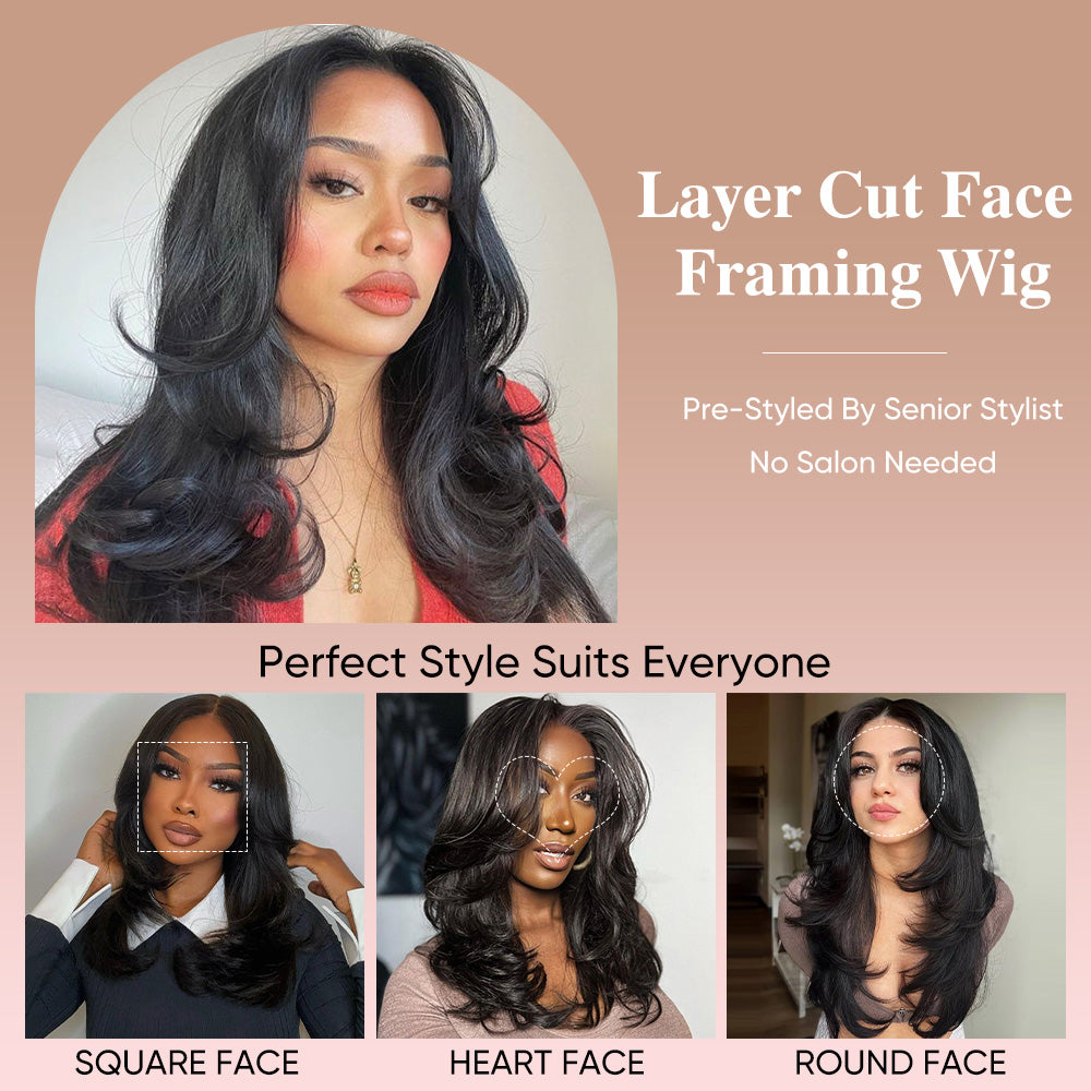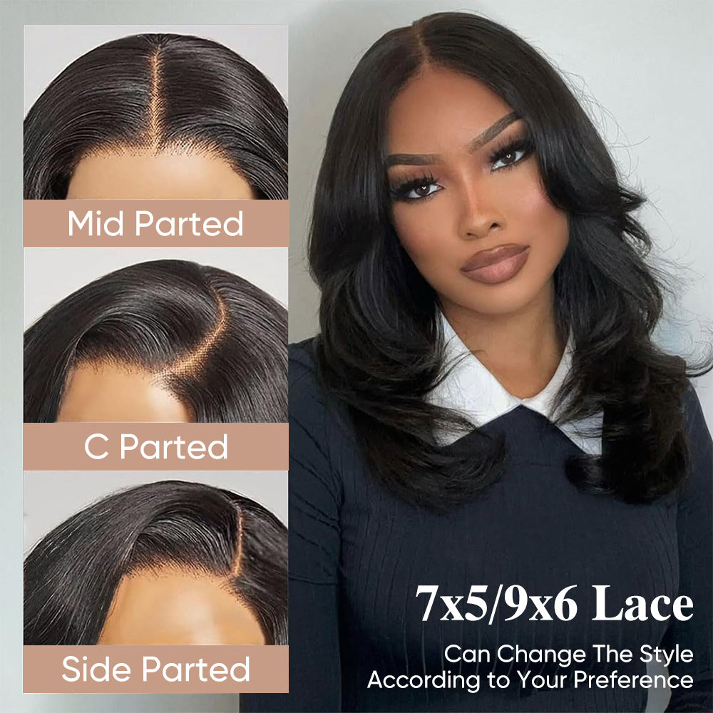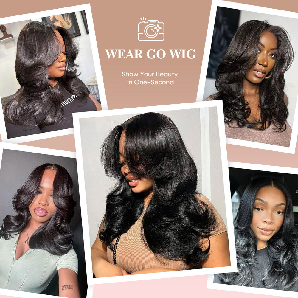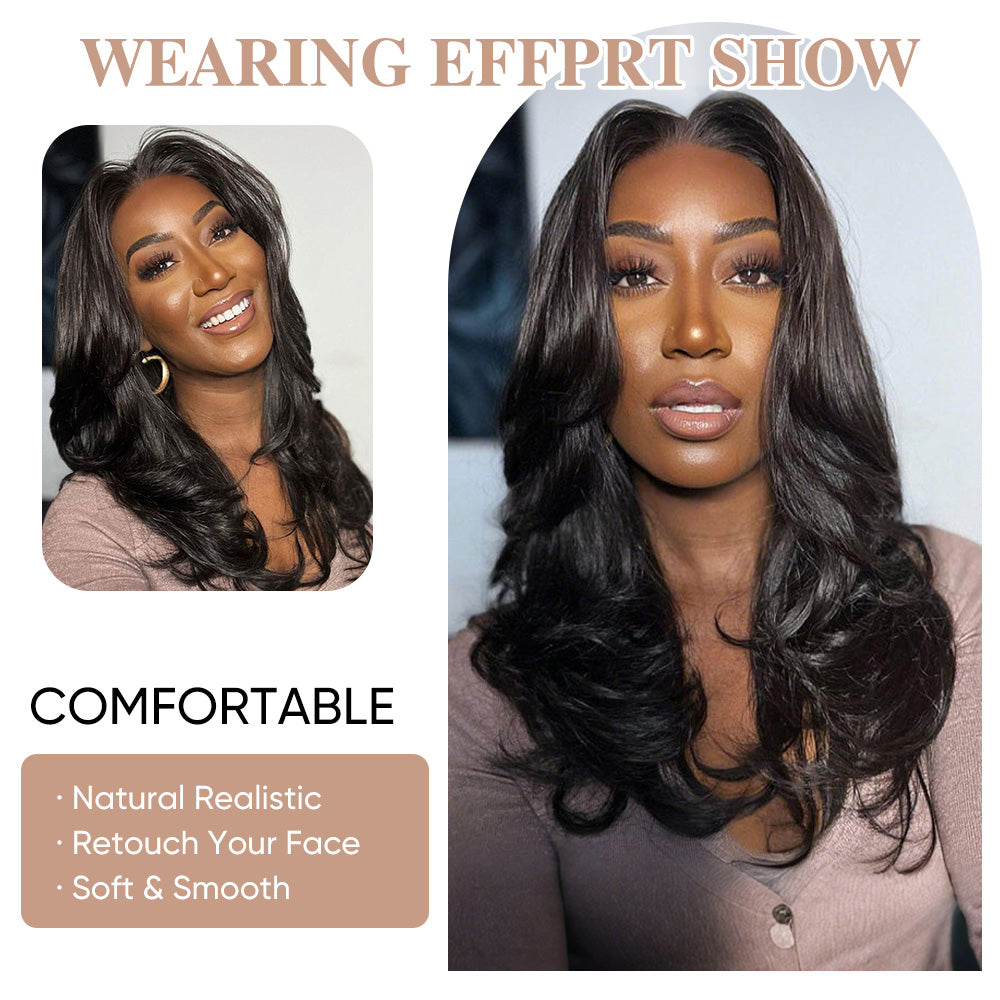 14" 20" Curtain Bangs Wavy Layered Wig Pre Cut Lace Human Hair Super Deal