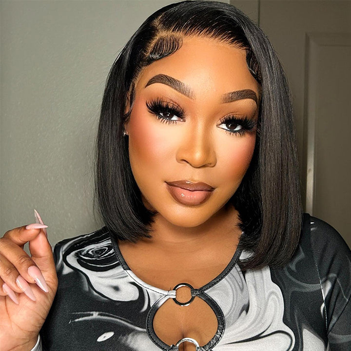 8" Glueless Straight Blunt Cut 13x4 Bob Lace Wig Flash Deal