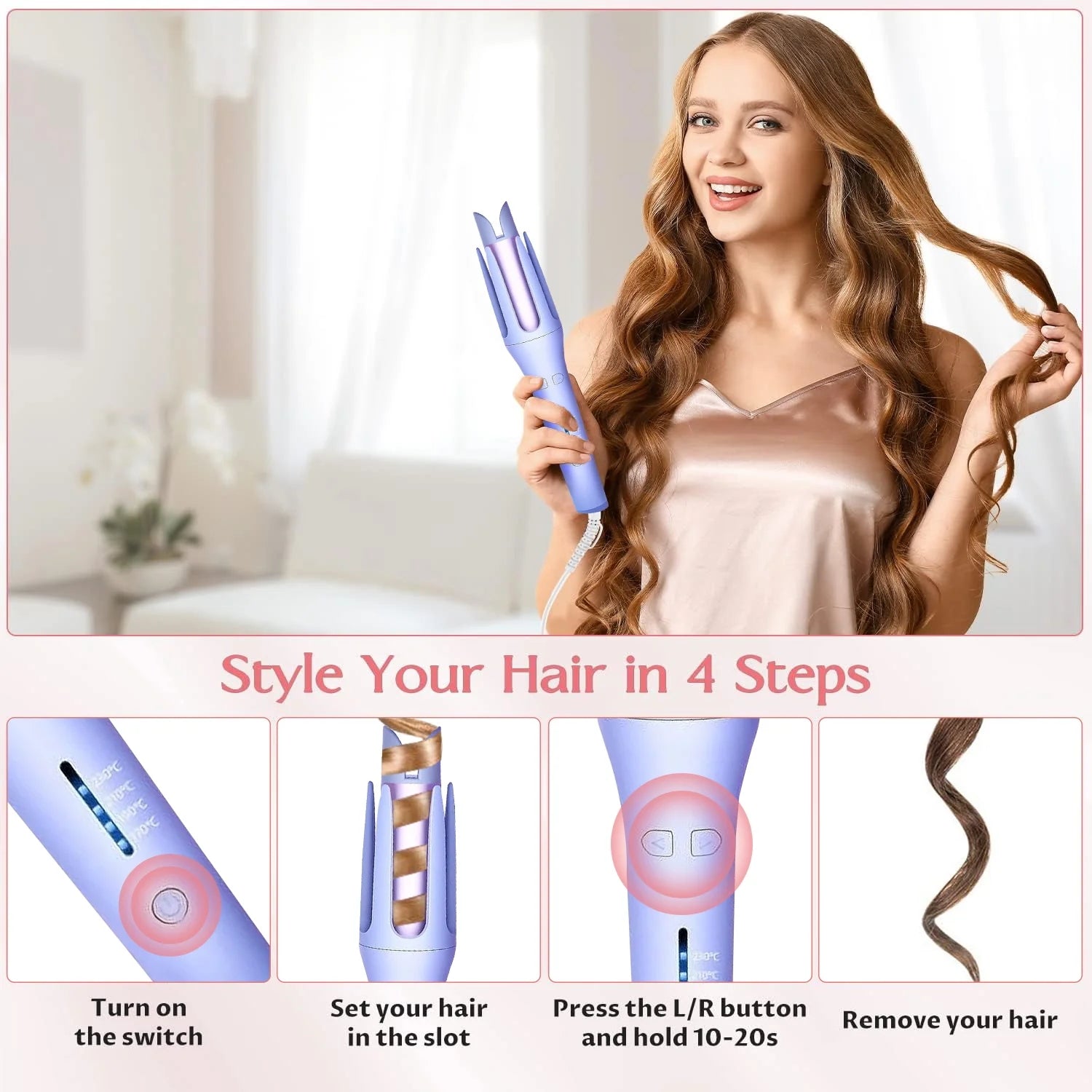 Purple/Pink Color Automatic Curling Iron Hot Tools 4 Temperature Anti-Scald