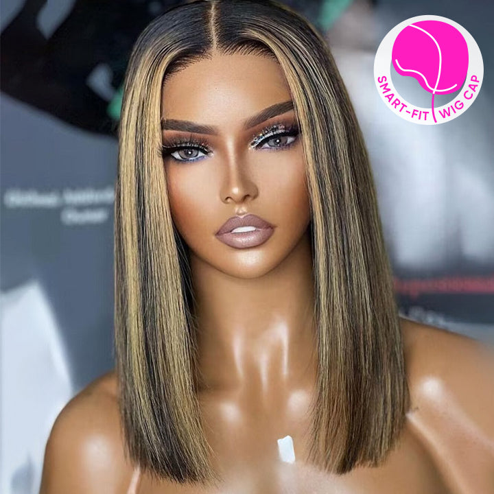 Smart-Fit Pull Go Highlight Honey Straight Bob Glueless Human Hair Wig Pre Cut Lace