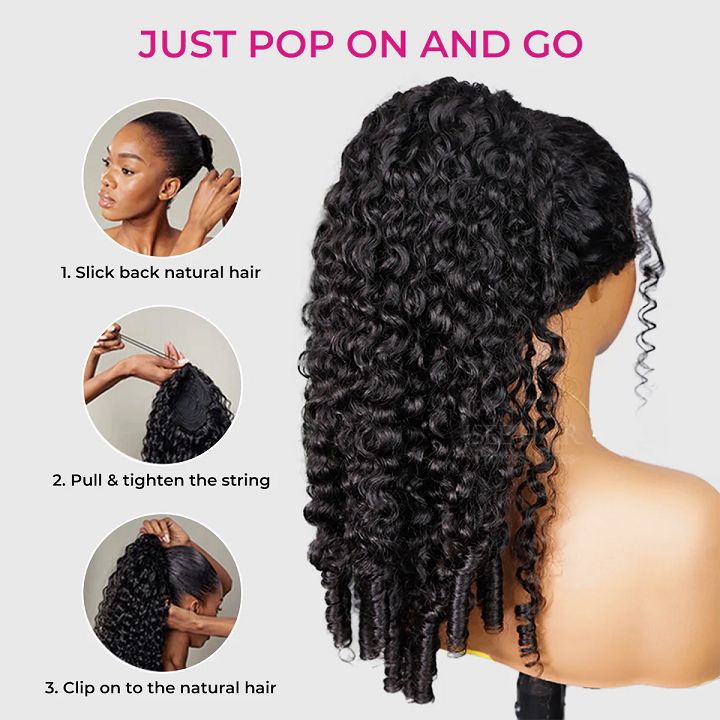 Burmese Curly Ponytail 100% Human Hair with Invisi Fit Strap