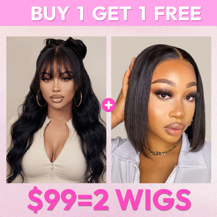 2 WIGS=$99|16" Body Wave 13x5 Pre Cut Lace Wig With Bangs+8" Straight Bob 13x4 Lace Wig Flash Deal