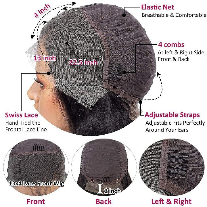 Upgrade wig cap: Body wave 13x4 lace front wig human hair new bulid-in elastic wig cap. Fasten your side lace to ensure wig stays in place all day long. Wide elastic band and adjustable straps easy install and fit 22-22.5 inches head.