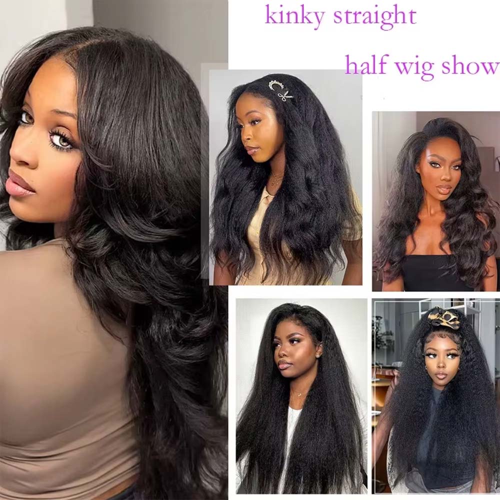 Wear and Go Glueless Wig & Beginner-Friendly:This 3 in 1 kinky straight half wig features an upgraded glueless design with adjustable drawstring and 4 extended combs for a secure, comfortable fit. Super easy to install and remove—perfect for beginners and daily wear.