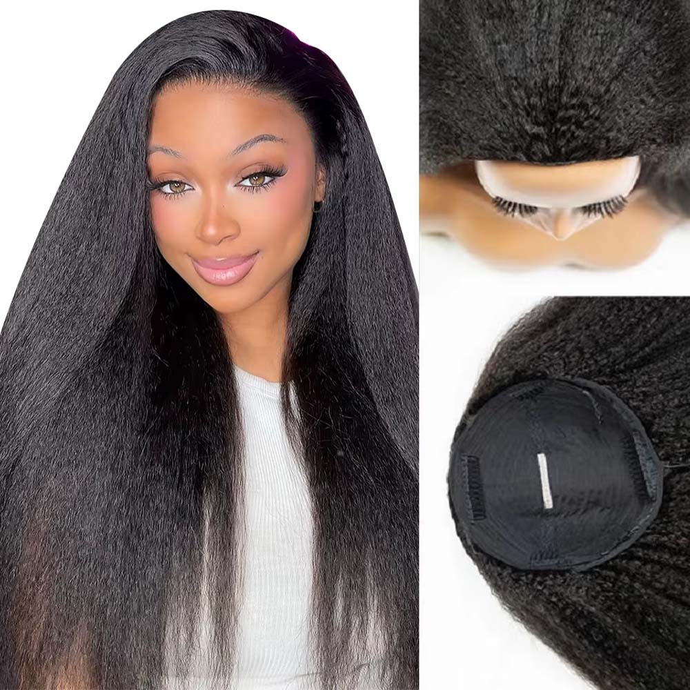 100% Human Hair Kinky Straight Wig:Made from unprocessed human hair, cut from a single donor. Can be dyed, permed, bleached, straightened, or restyled as your own hair—tangle-free and shedding-free.
