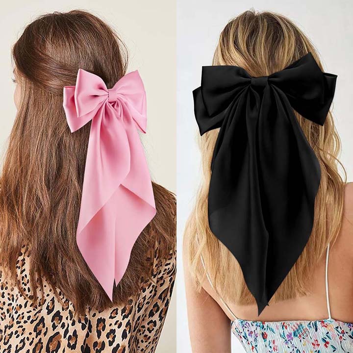 Amazing Material:Hair bows barrettes made from metal french clips and feature decorative silky satin fabric with long tail, soft and durable, cute bow and long tail, It can be matched with any sweet girls's costume. Not only can it be used as a hair clip, but also as a DIY accessories.