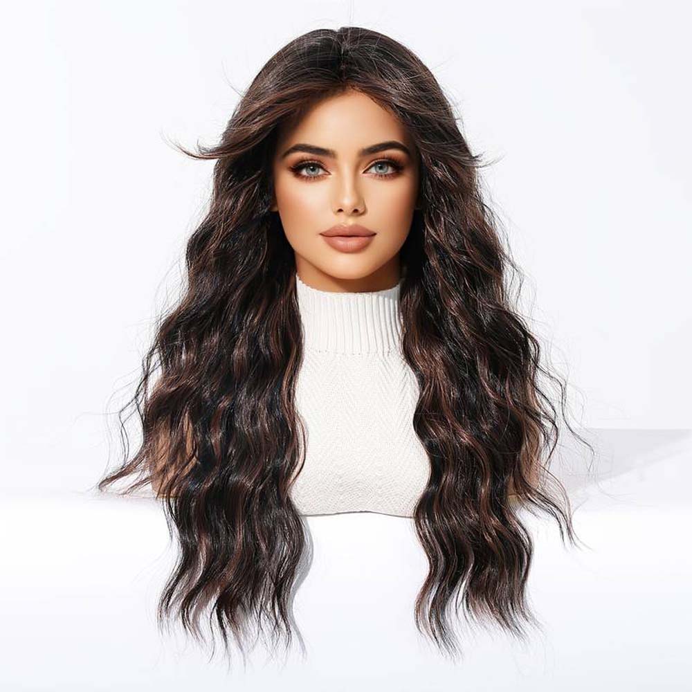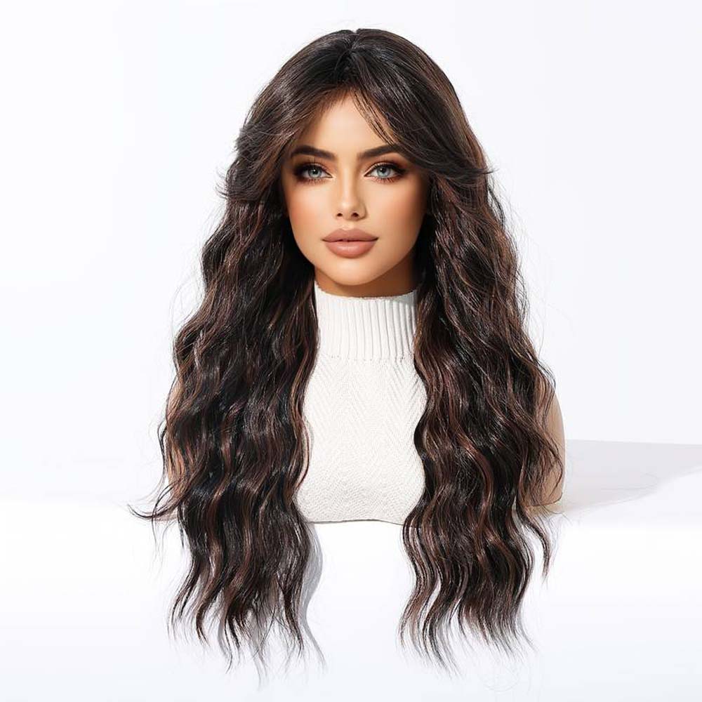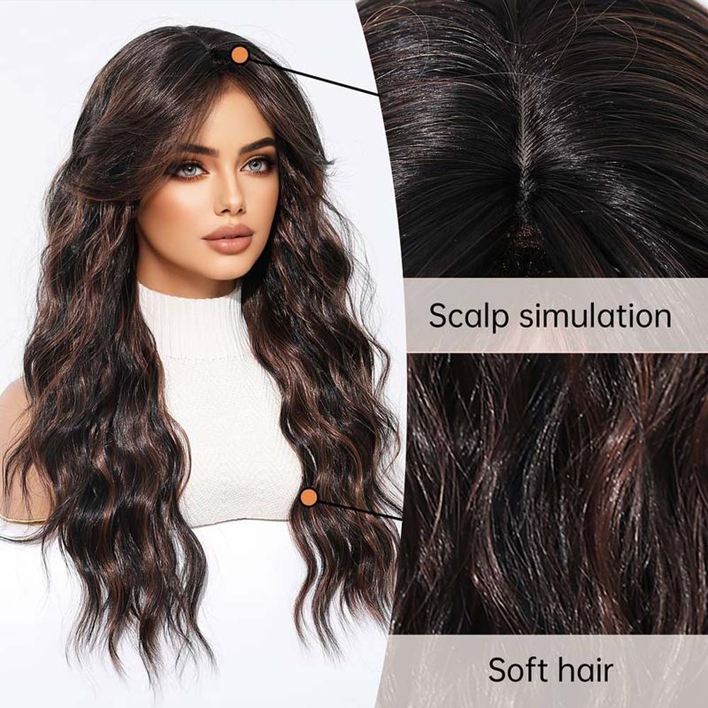 Jessie's Wig Loose Wave Style Natural Look Brown highlights Heat Resistant Synthetic Hair Wigs For Women 24 Inch