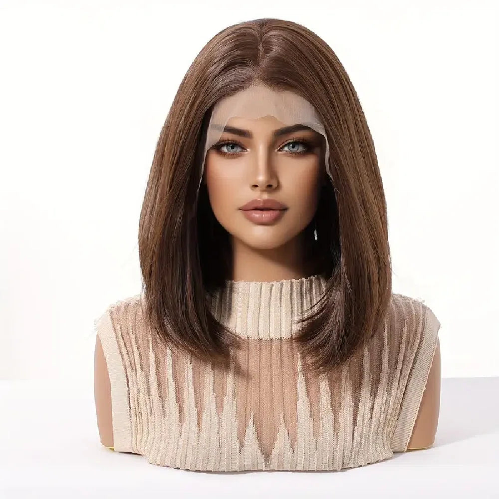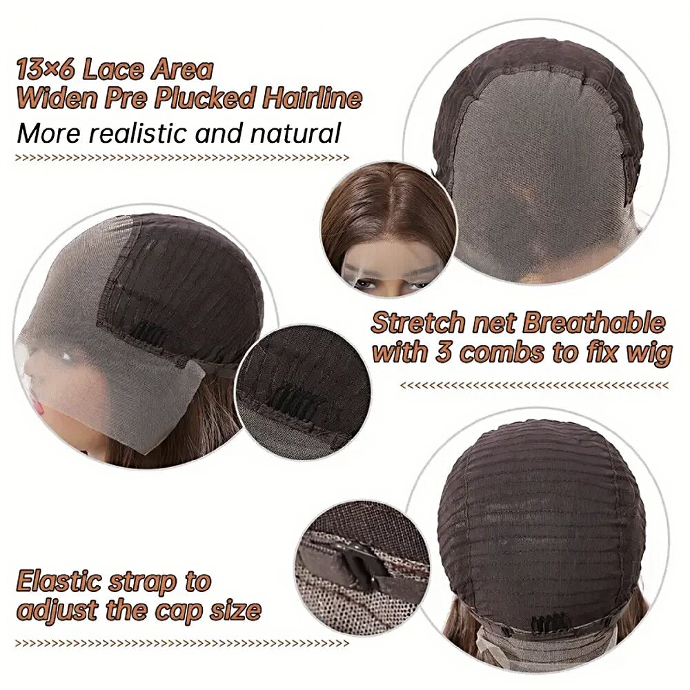 【High-Quality Imitation Human Hair Fibers】: This synthetic lace front bob wig delivers silky-smooth, straight strands that mimic real hair.