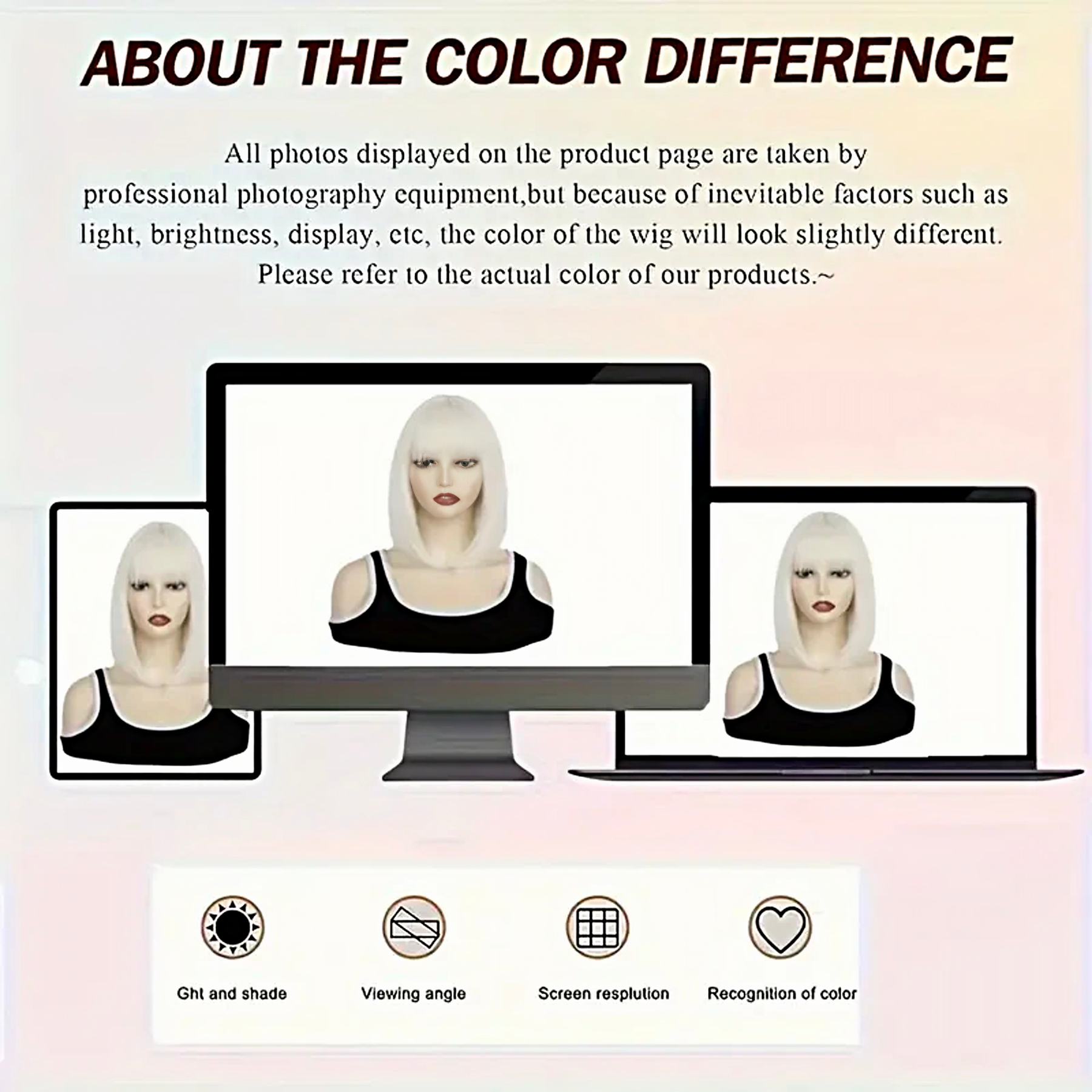 Natural Look and Stylish Design: This is short Bob wig synthetic wig offers a natural appearance and movement, perfect for those who want to stay stylish and trendy. Please note that slight variations in color may occur due to lighting and screen settings. To maintain its quality, we recommend using a wide-tooth comb for detangling.