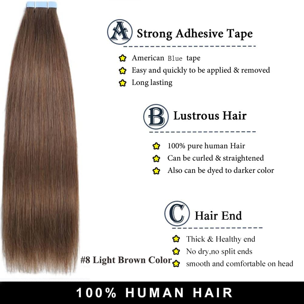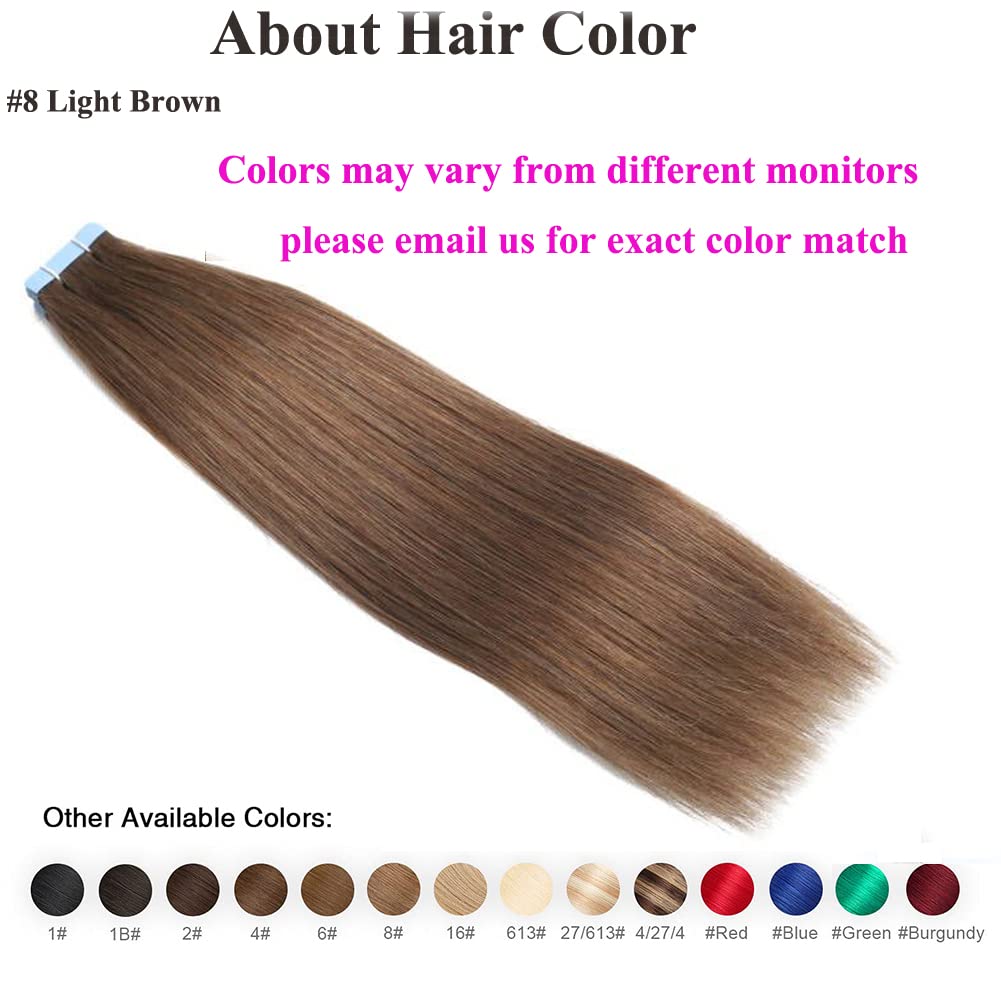 【Tape in Extensions Specification】-- 20Pcs per pack; For thick hair, 3-4 packs for length and 2-3 packs for thickness; for thin hair, 4-5 packs for length and 3-4 packs for thickness; we recommend 3-4 packs of hair extensions tape in for a full head