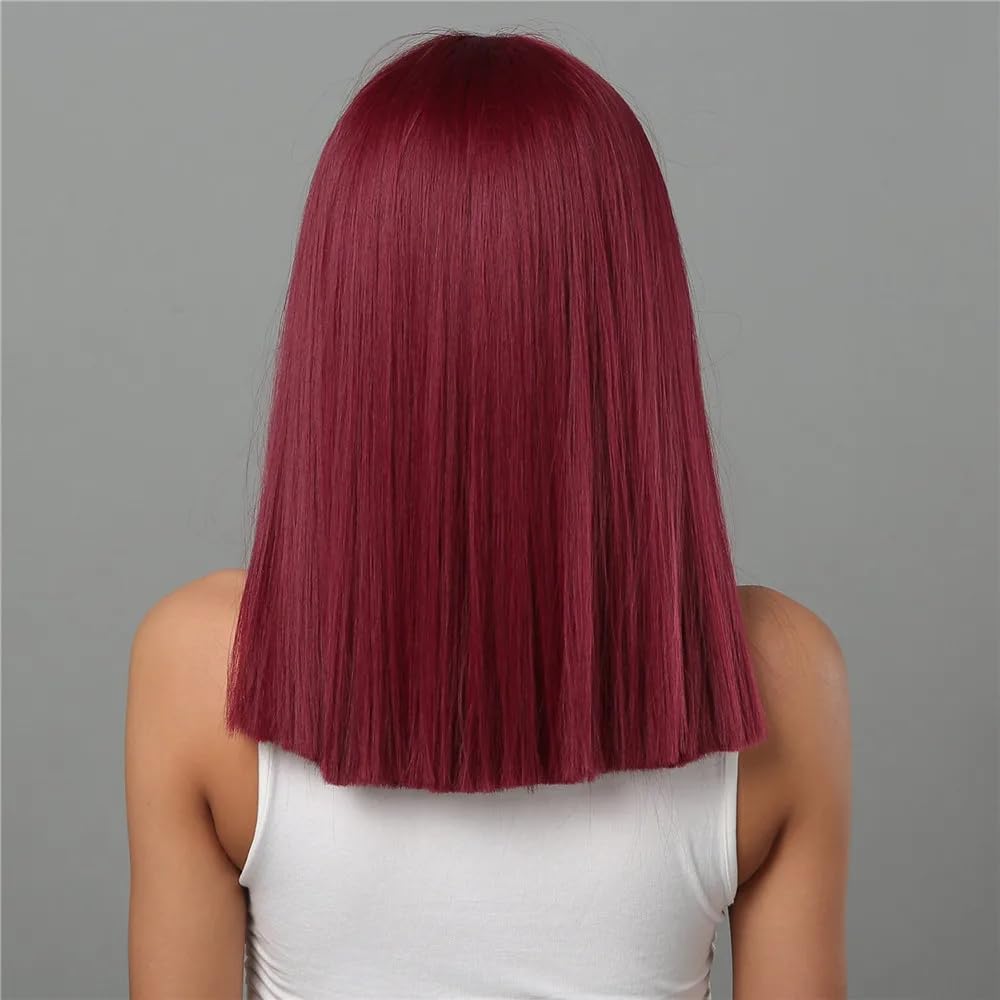 【Classic Red Wig】This Burgundy wig offers natural soft hair and is paired with a straight Blunt cut, making it classic yet edgy