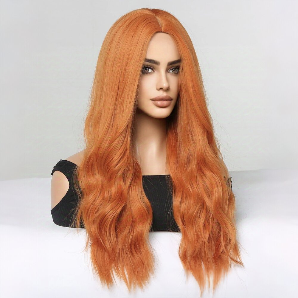 Jessie's Wig 26 Inch Long Wavy Middle Part Synthetic Wig Ginger Color 1 Pc/Pack