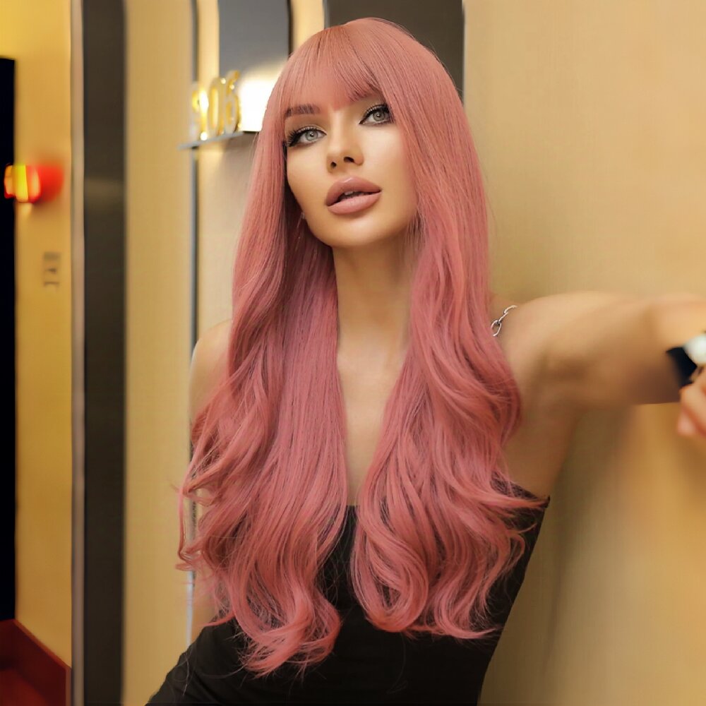 Jessie's Wig 26 Inch Wavy Wig For Party Synthetic Wig Hot Pink 1 Pc/Pack