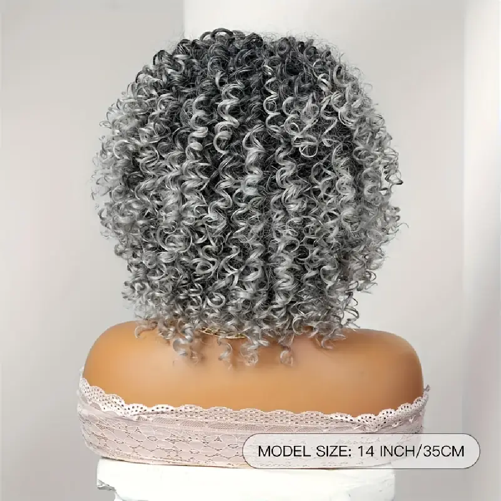 Jessie's Wig Cosplay Heat Resistan Afro Kinky Curly Wigs With Bangs For Synthetic Wigs Silver Gray Wig 14 Inch 1 Pc/Pack