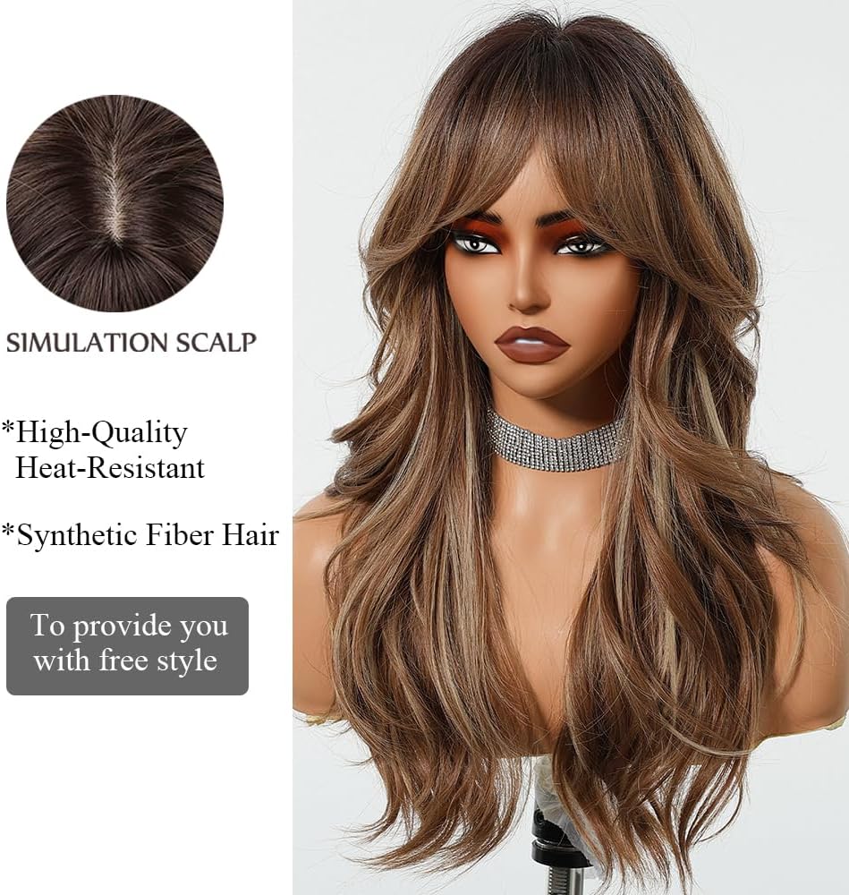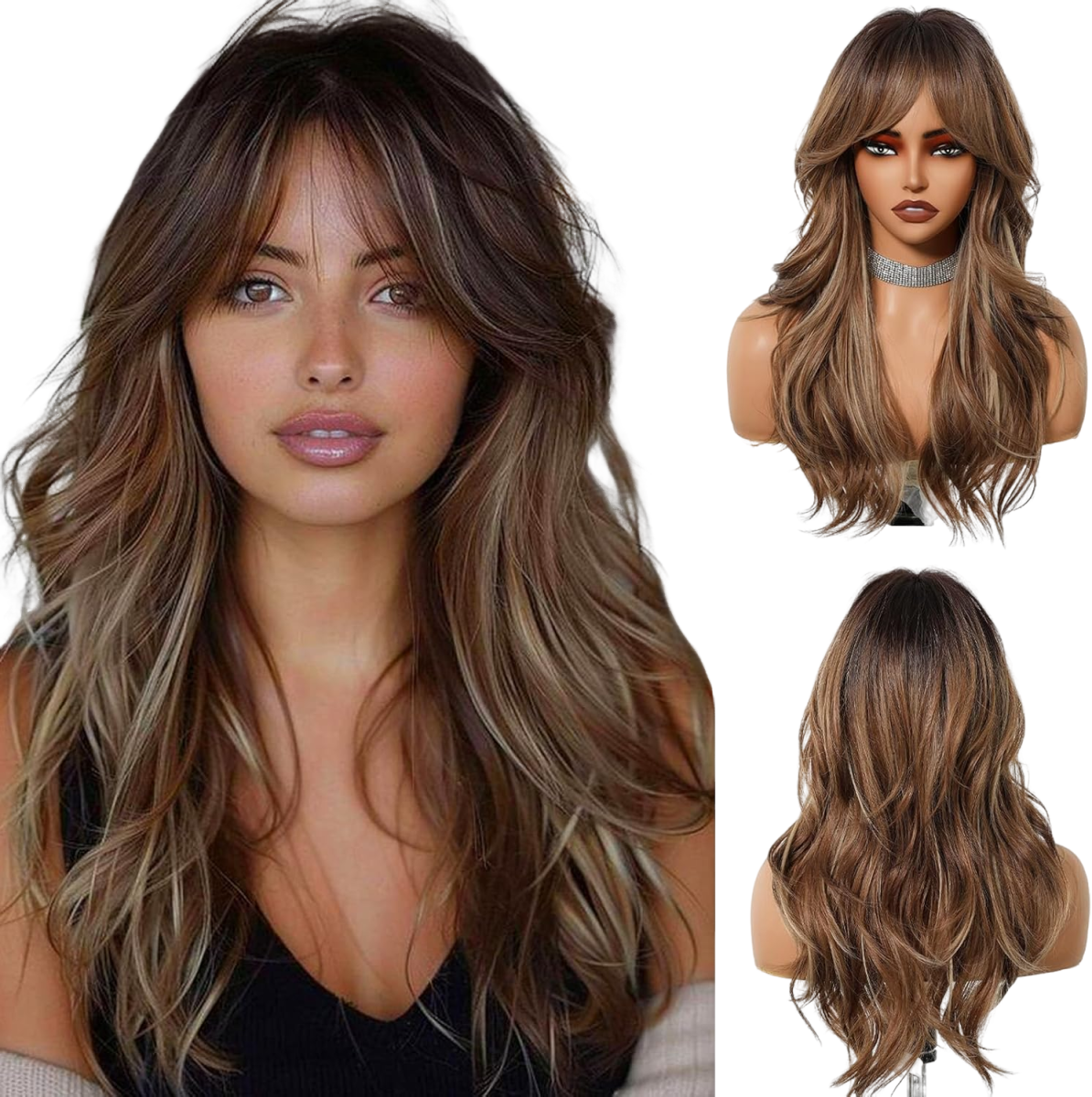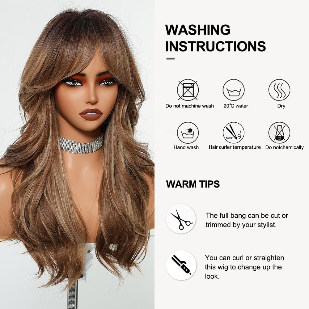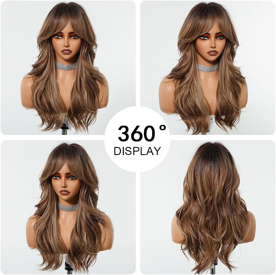 Jessie's Wig Cosplay Heat Resistant Synthetic Wigs Long Ombre mixed Brown Wig With Bangs 24 Inch 1 Pc/Pack