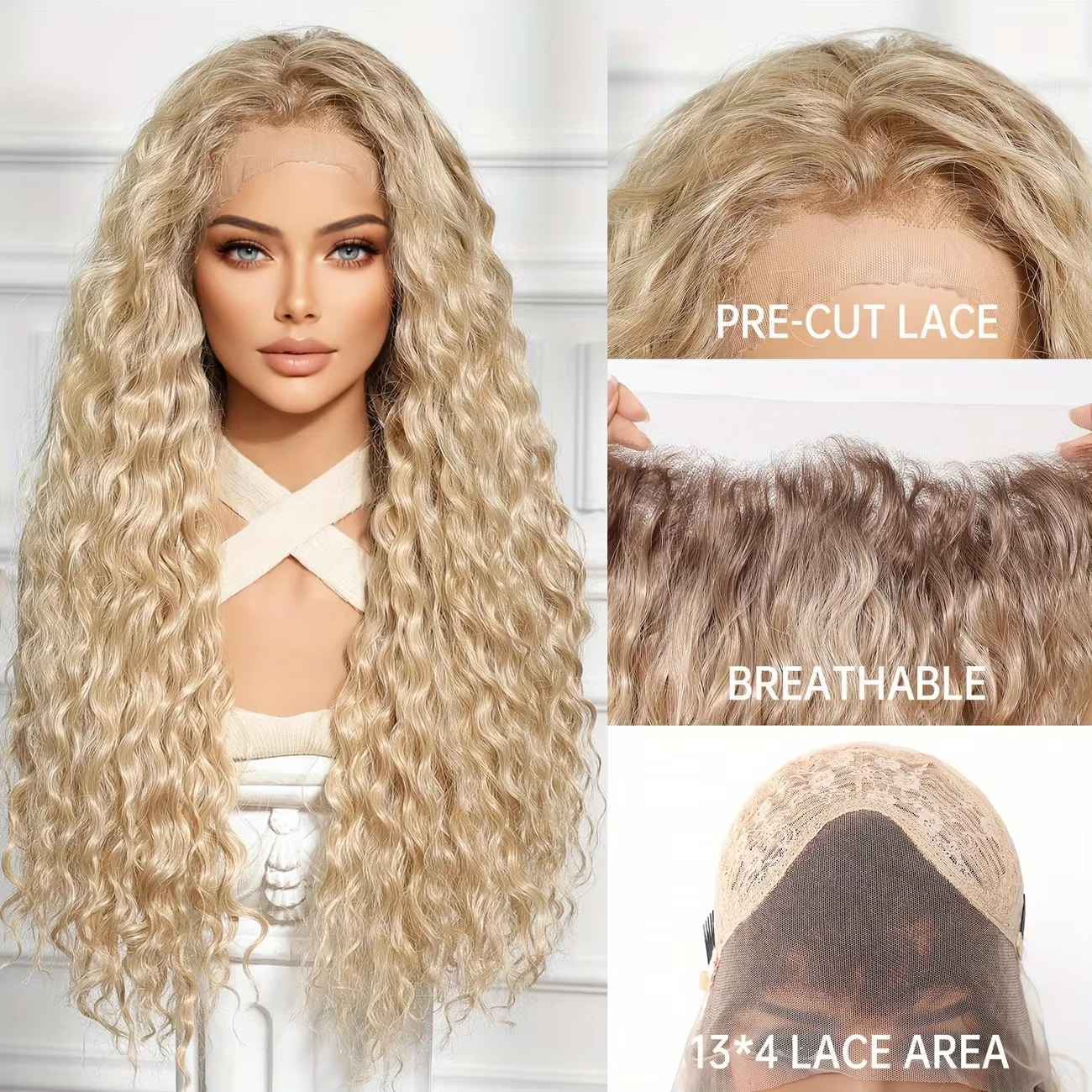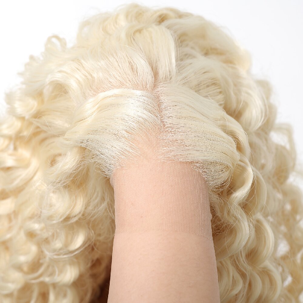 【Upgrade synthetic curly lace wig materia】: This Blonde curly wig is made of high quality heat resistant imported soft synthetic fiber; The temperature can be up to 180 ℃ ( 356℉ )