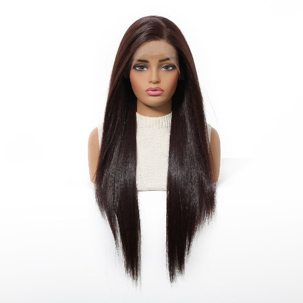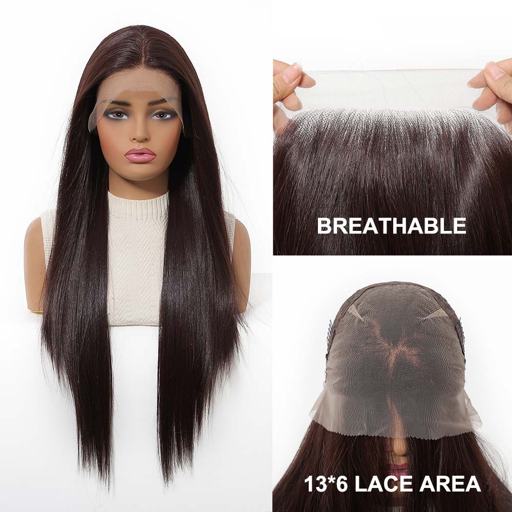 Jessie's Wig Long Straight Wig Heat Resistant Daily Party Costume Middle Part Synthetic Hair Shiny Brown 13x6 Lace Wigs 28 Inch 1 Pc/Pack