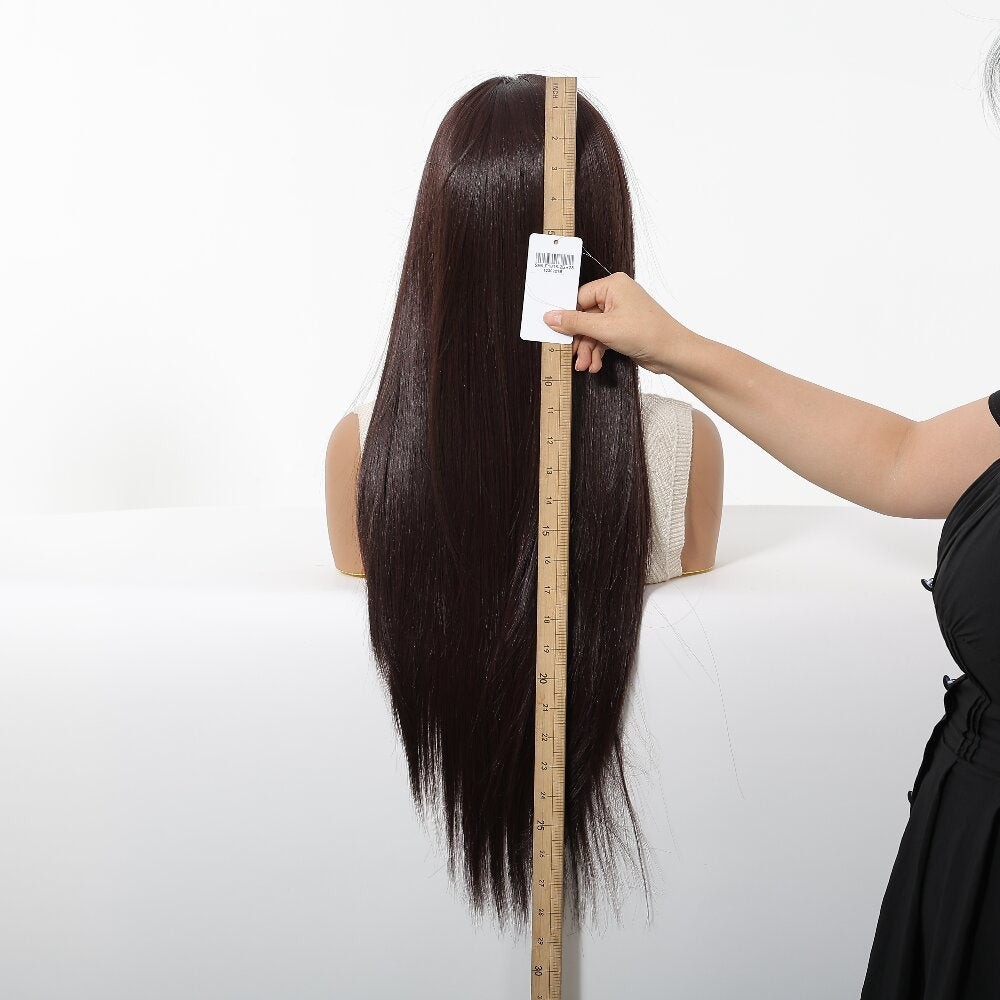 【Shiny Brown Long Straight  wig style】: 150% density  wig touch more soft and fluffy. Feel like human hair and scalp.