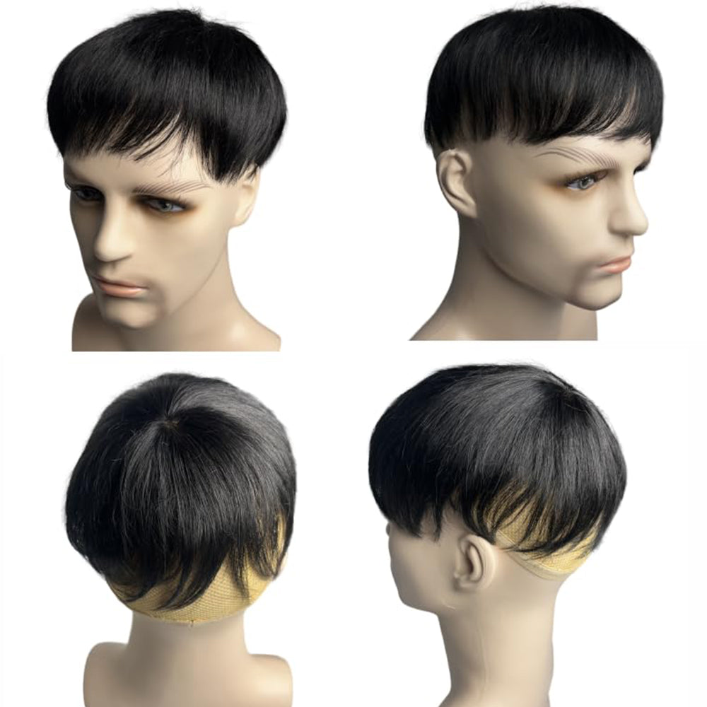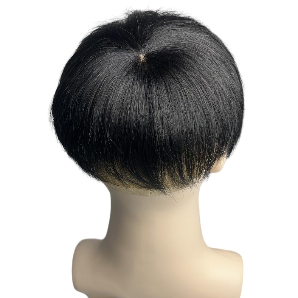 materials to choose】: Hand tied lace slik base toupee with biological scalp.
