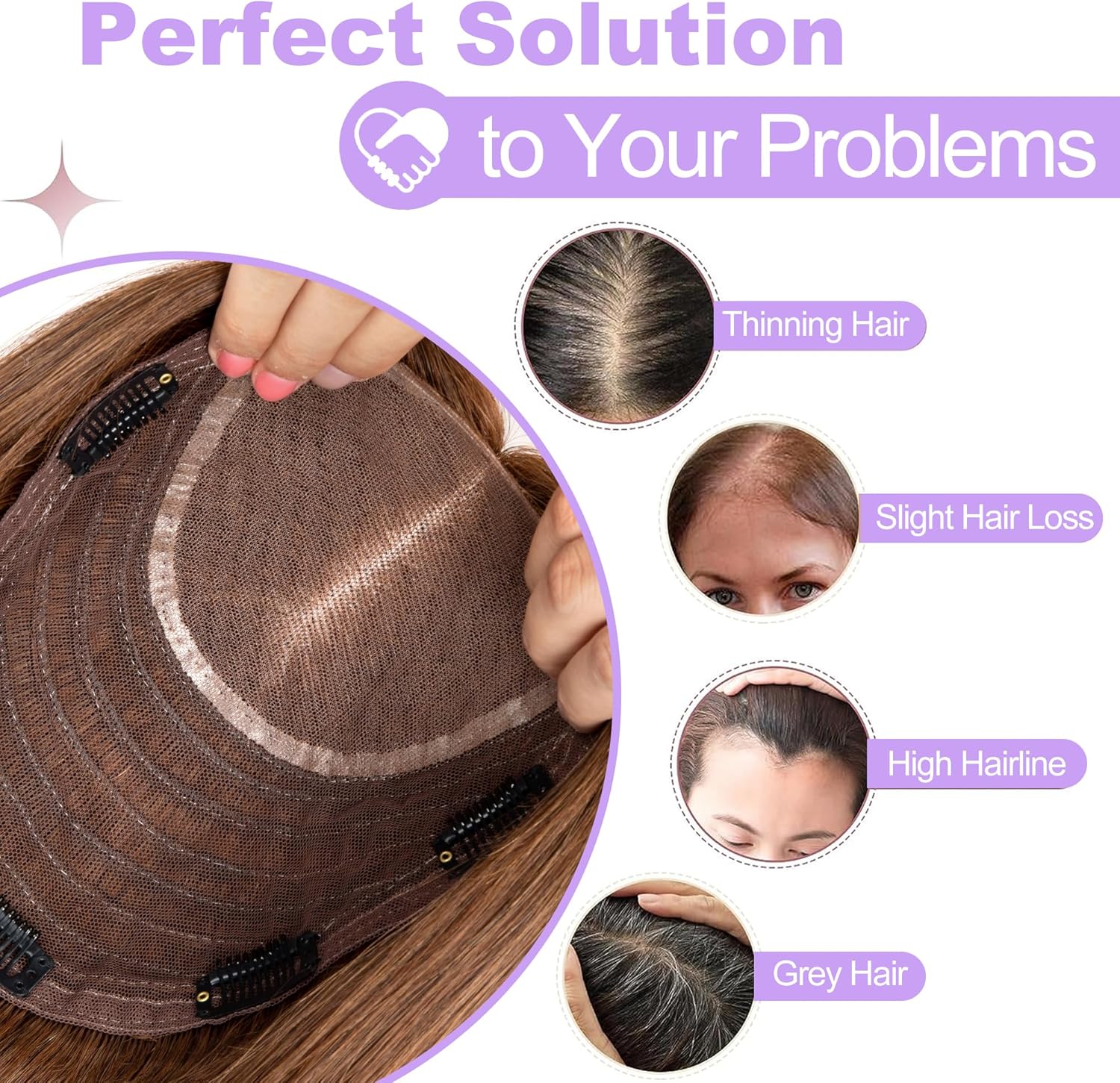 Easy to Wear and Secure: Our hair toppers are designed for effortless attachment with clips, securely fitting onto your existing hair. Achieve your desired look within minutes and enhance your confidence.